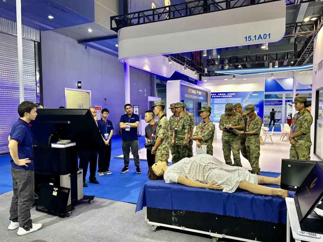 兩交會(huì )促進(jìn)兩用技術(shù)物資裝備研究應用,推動(dòng)了兩用技術(shù)物資裝備產(chǎn)業(yè)發(fā)展,圍繞部隊“作訓、后勤、裝備”三大任務(wù)需求,為部隊建設和裝備物資采購提供參考。部隊領(lǐng)導嘉賓、政府、協(xié)會(huì )等紛紛出席展會(huì ),了解新興技術(shù)與裝備。      天堰科技作為國內高端醫教產(chǎn)品研發(fā)制造商和服務(wù)提供商,也積極投入衛勤培訓設備的開(kāi)發(fā),并與國內著(zhù)名軍醫大學(xué)進(jìn)行強強合作。本次展會(huì )攜智能化戰創(chuàng )傷模擬訓練系統、自救互救模擬人、智能分娩模擬人、臨床醫學(xué)模擬病人系統等多款自研產(chǎn)品參加。在為期3天的會(huì )展中,天堰科技本著(zhù) “讓真實(shí)觸手可及”的宗旨,向參展人員充分展示了天堰科技在軍民兩用、醫學(xué)教育領(lǐng)域內的行業(yè)優(yōu)勢、產(chǎn)品專(zhuān)業(yè)性和豐富性,吸引了眾多部隊領(lǐng)導停駐展位,交流溝通。