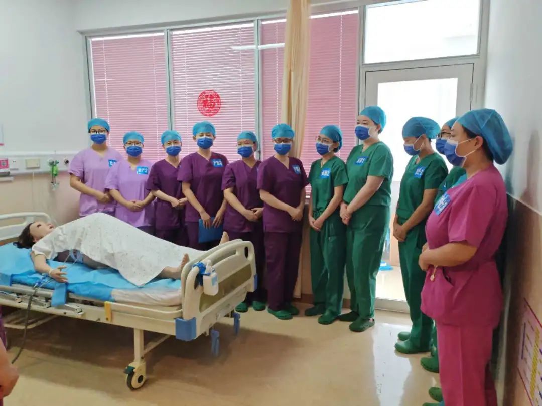 本次實(shí)訓周演練的病例《羊水栓塞》,產(chǎn)婦38歲,經(jīng)產(chǎn)婦,孕3產(chǎn)2存2,既往無(wú)高血壓、糖尿病等慢性疾病史。無(wú)藥物過(guò)敏史。孕早期建檔,規律產(chǎn)檢,無(wú)異常。昨日最后一次產(chǎn)檢,超聲估計胎兒體重3800g,頭位,羊水指數20.2cm,其余產(chǎn)檢指標均正常。2小時(shí)前見(jiàn)紅伴不規律下腹痛,經(jīng)急診收入院待產(chǎn)。17:00:開(kāi)始規律腹痛,內診:宮頸近消,宮口容指,S-2,胎膜完整。疼痛評分5~6分,產(chǎn)婦要求行分娩鎮痛。病例演練分為五個(gè)場(chǎng)景:第一場(chǎng)景胎心發(fā)生頻發(fā)變異減速,進(jìn)行宮內復蘇;第二場(chǎng)景發(fā)生延長(cháng)減速,胎心率降至65bpm,持續3分鐘不恢復,立即啟動(dòng)即刻剖宮產(chǎn);第三場(chǎng)景,剖宮產(chǎn)術(shù)中產(chǎn)婦出現呼吸困難、意識喪失,立即啟動(dòng)孕產(chǎn)婦復蘇流程;第四場(chǎng)景,胎兒娩出后產(chǎn)婦發(fā)生大出血,進(jìn)行產(chǎn)后出血的救治;第五場(chǎng)景,新生兒在出生后膚色蒼白,經(jīng)過(guò)清理呼吸道,刺激,新生兒無(wú)哭聲,心率60次/分,進(jìn)行新生兒復蘇操作。